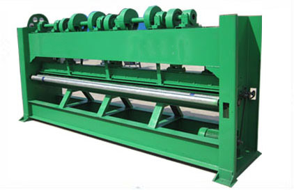 針刺機利用具有三角形或其他形狀的截面,且在棱邊上帶有刺鉤的刺針對纖維網(wǎng)反復(fù)進行穿刺。由交叉成網(wǎng)或氣流成網(wǎng)機下機的纖網(wǎng),在喂入針刺機時十分蓬松,只是由纖維與纖維之間的抱合力而產(chǎn)生一定的強力,但強力很差,當多枚刺針刺入纖網(wǎng)時,刺針上的刺鉤就會帶動纖網(wǎng)表面及次表面的纖維,由纖網(wǎng)的平面方向向纖網(wǎng)的垂直方向運動,使纖維產(chǎn)生上下移位,而產(chǎn)生上下移位的纖維對纖網(wǎng)就產(chǎn)生一定擠壓,使纖網(wǎng)中纖維靠攏而被壓縮。